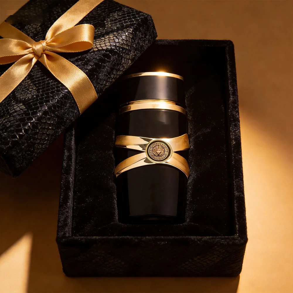 Perfume Luxuoso 100ml, Design Exclusivo Preto e Dourado, Fragrância Duradoura, P